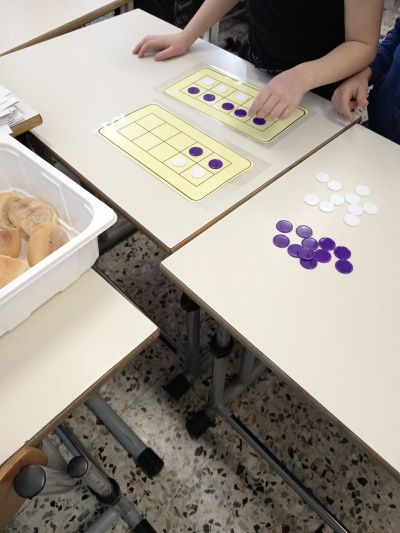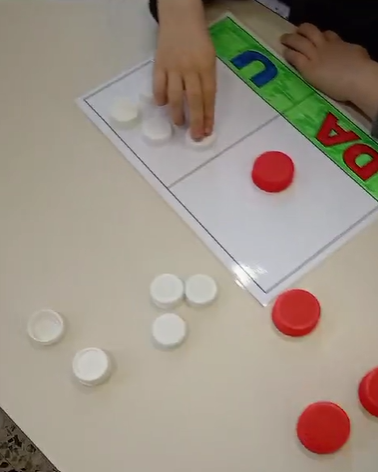- Occorrente: due o più ten frames, gettoni o tappi colorati.