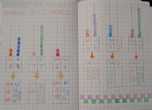 Con l’abaco è possibile anche lavorare solo sulle decine, aggiungendo o togliendo una decina alla volta per vedere che numero fa, oppure sulle unità aggiungendo o togliendo uno.